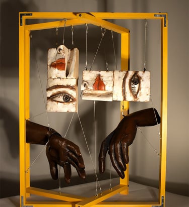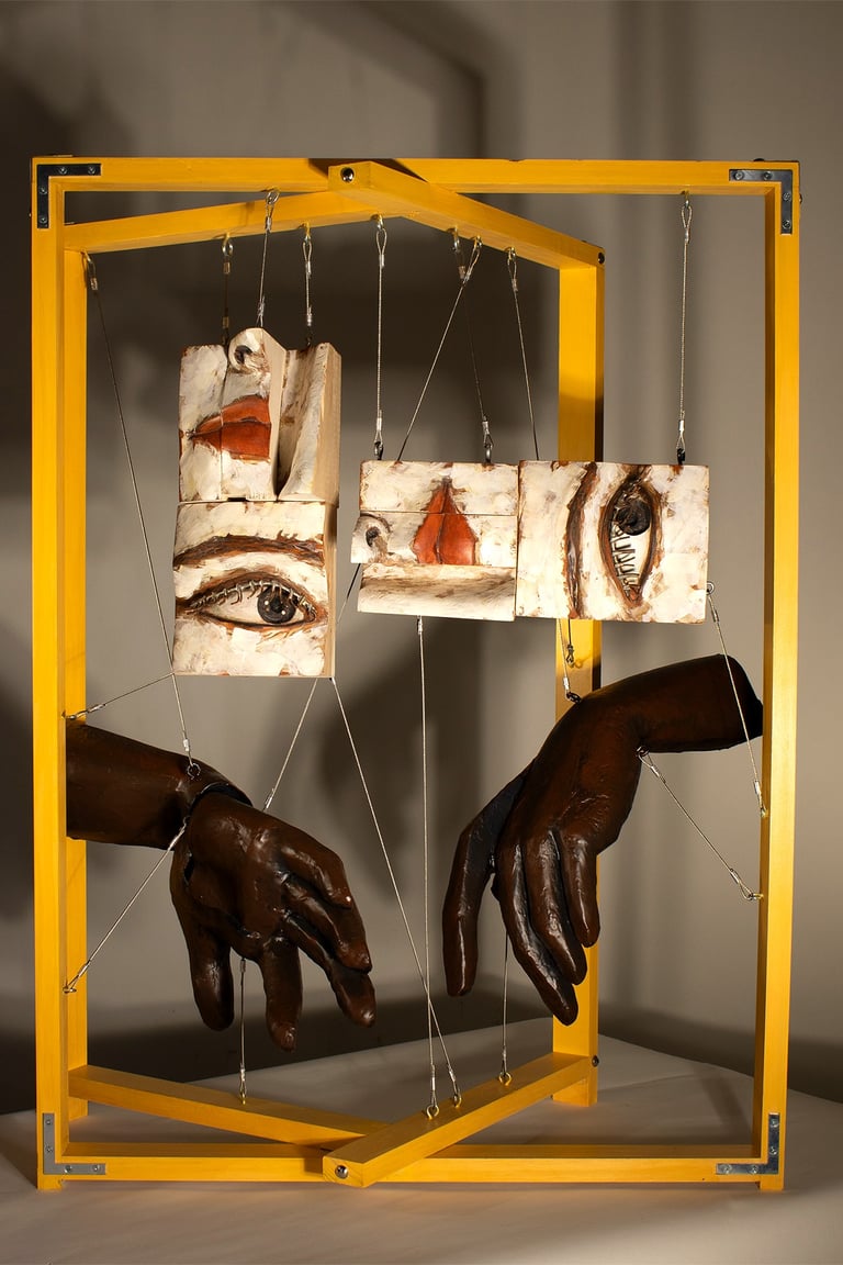Contemporary systems of power operate not only through domination, but through participation. These fragmented sculptural forms embody forces that seduce, normalize, and consume—revealing how submission and complicity shape the identities they appear to control.