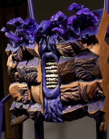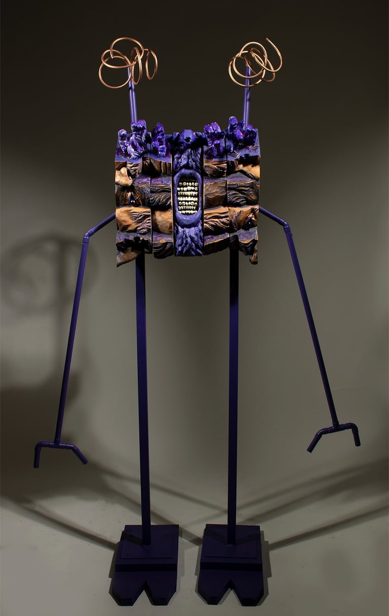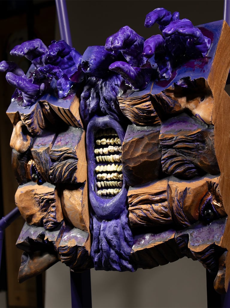 Patriarchy-The System that Devours (Detail) Wood, resin, steel, copper. 61h x 37w x 16d in 2025