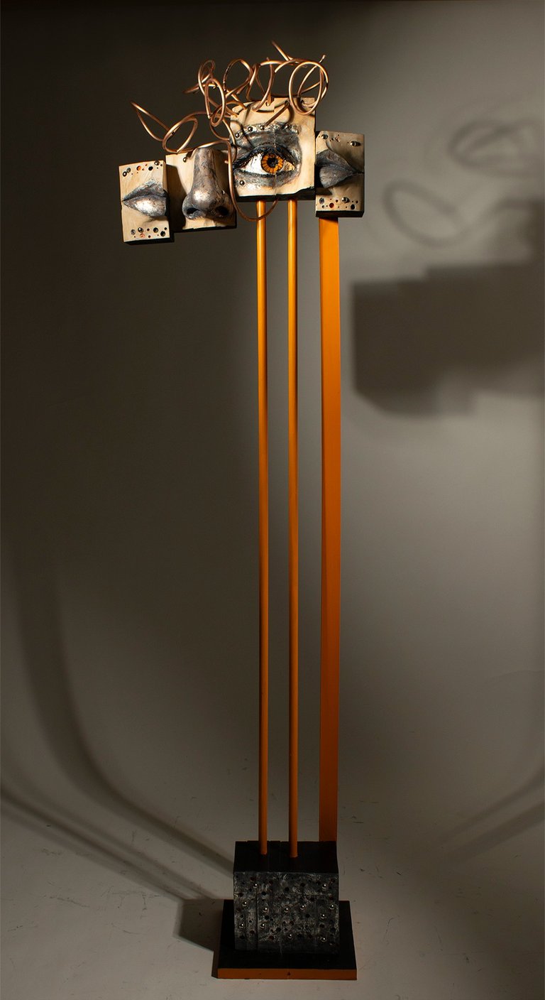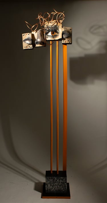 Constant Observer Wood, steel, metal leaf, copper. 73h x 19w x 10d in 2025