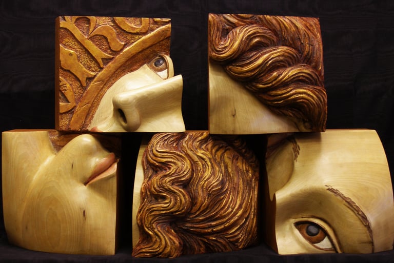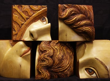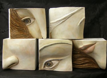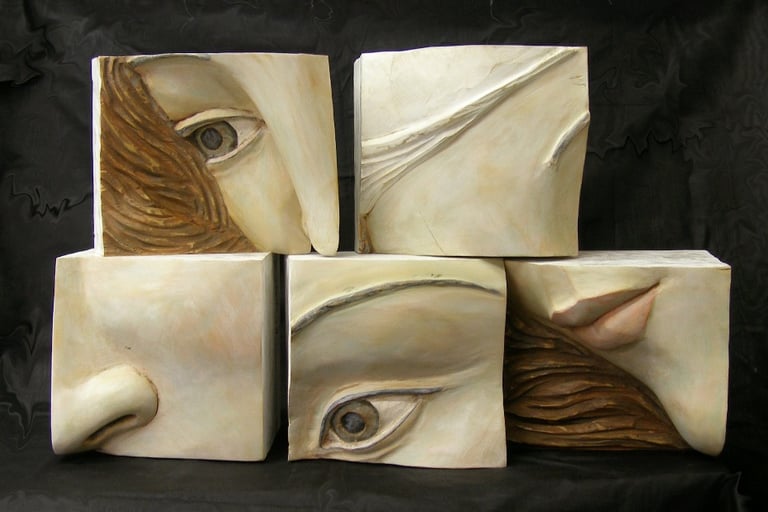 “Unfixed Self” 40”w X 20”h X 8"d. Wood Polychrome. 2005