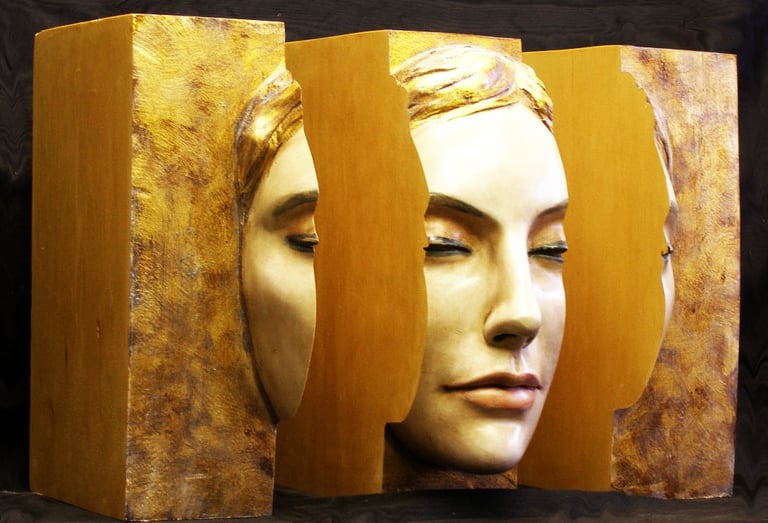 “Dreaming of Self” 12”h X 26”w X 12”d Wood polychrome and gold leaf. 2007